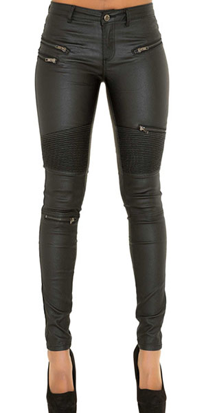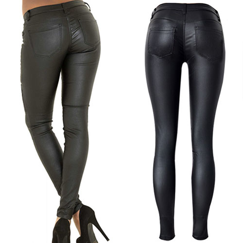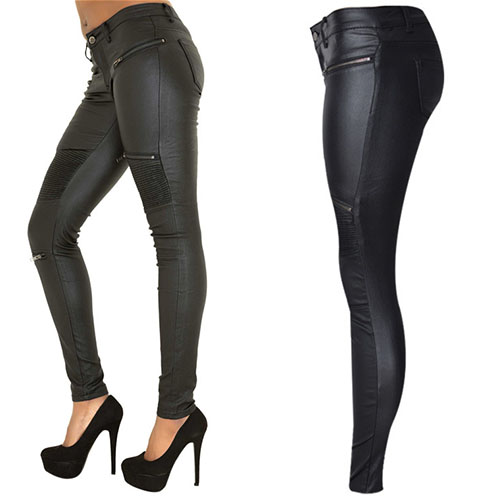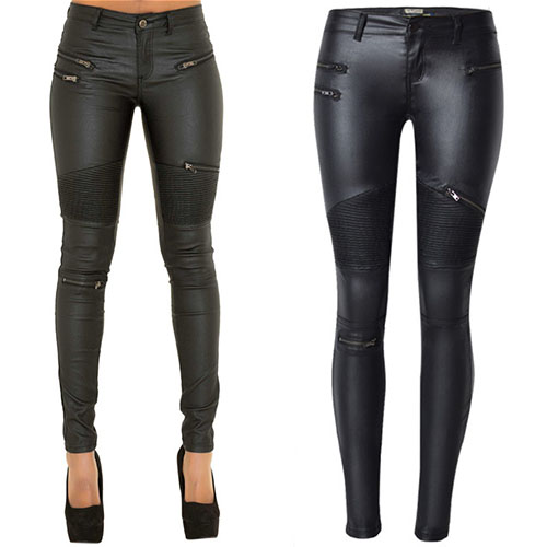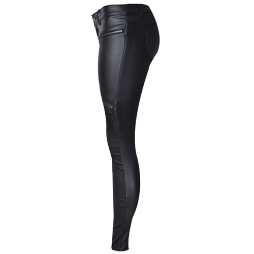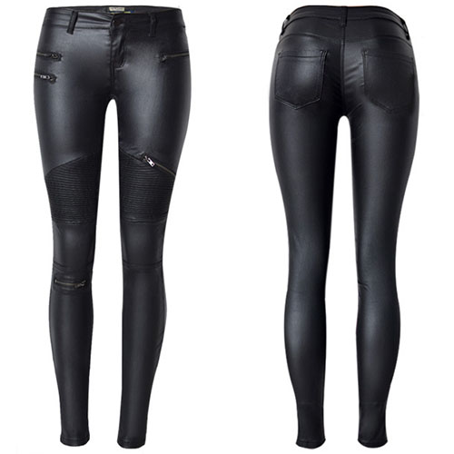 Achieve your sexy and charming look with this pair of PU pants. Boasting a solid black hue, decorated