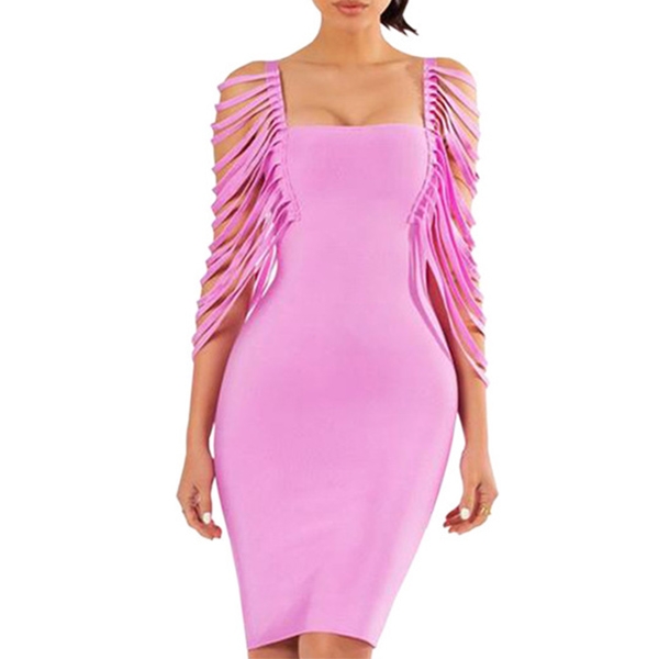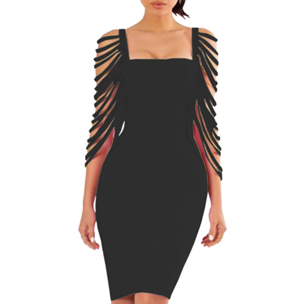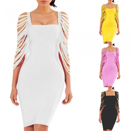 finished with square collar and a fit silhouette,this dress can easily showcase your seductive curve.
