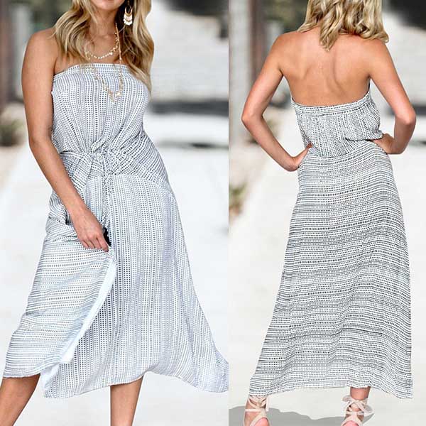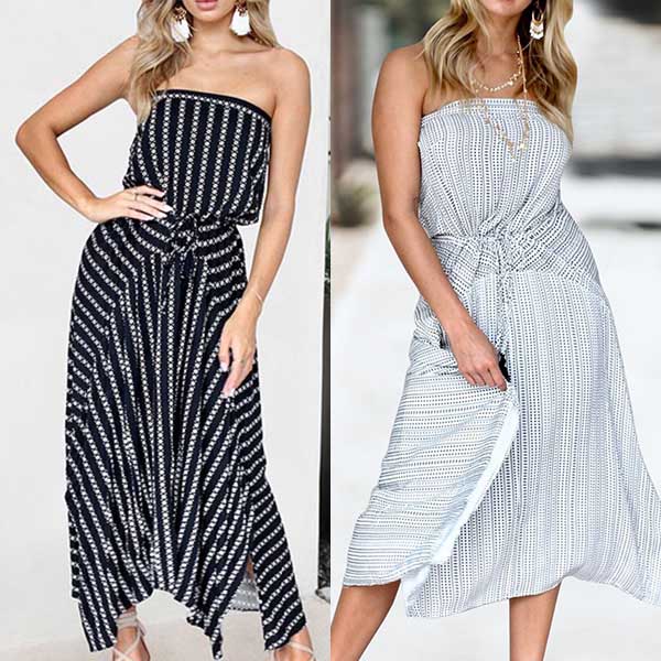 Strapless style,designed with chic printed pattern and elastic waist,this dress can make you look