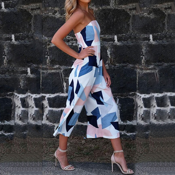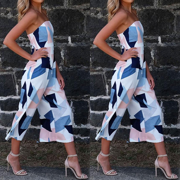 Your slender figure and style style will bloom in this jumpsuit. Strapless style,its color block design makes this piece look