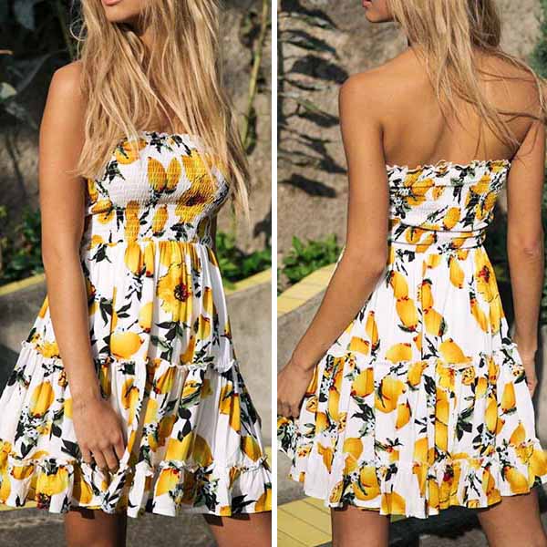 choosing this one! Strapless style,the vibrant floral print design will give you a more eye-catching look.