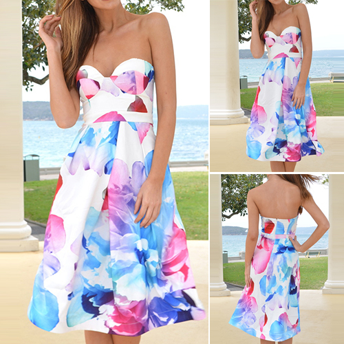 Strapless style,with eye-catching printed pattern,this dress is a perfect choice for parties and