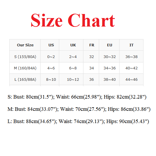 S : Bust : 80cm(31.5"); Waist : 66cm(25.98"); Hips : 82cm(32.28");