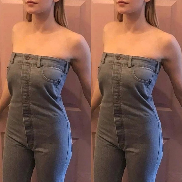 A perfect combination of femininity and sultry style, this denim jumpsuit is sure to help you win more eyes.