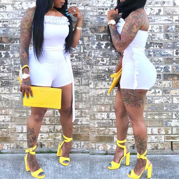 You can easily showcase your seductive curve through this tight romper. Solid color style,the strapless