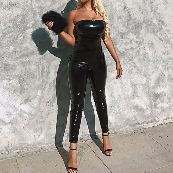 A cool way to accentuate your sexy and seductive curve? We suggest you slipping into this PU leather jumpsuit! Strapless