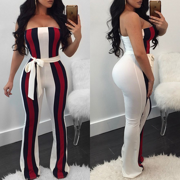 Wanna achieve for a different evening look? Then you can try this jumpsuit. Strapless design makes it look