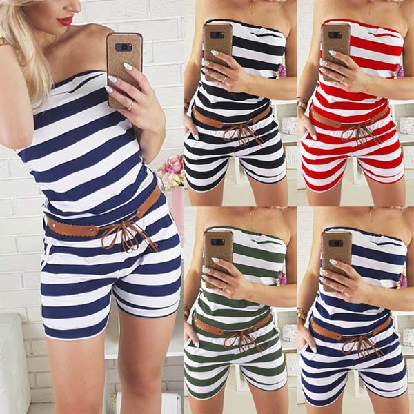 You can easily win more eyes when you dress yourself up with this striped romper. Strapless design