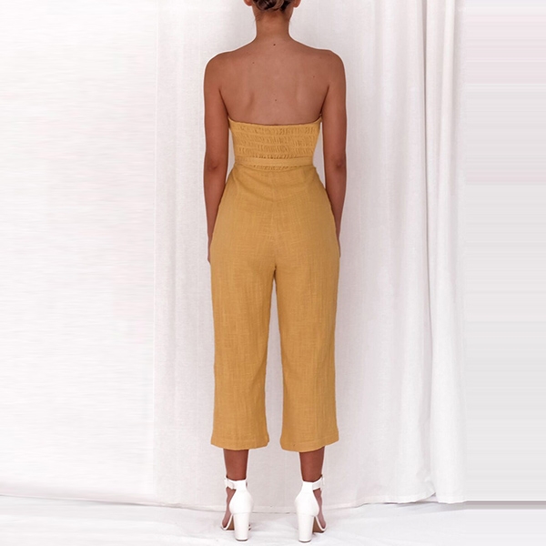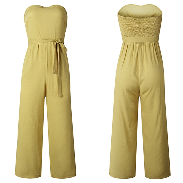 Your can easily enhance your feminine appeal with this jumpsuit! Strapless style,designed with high waist