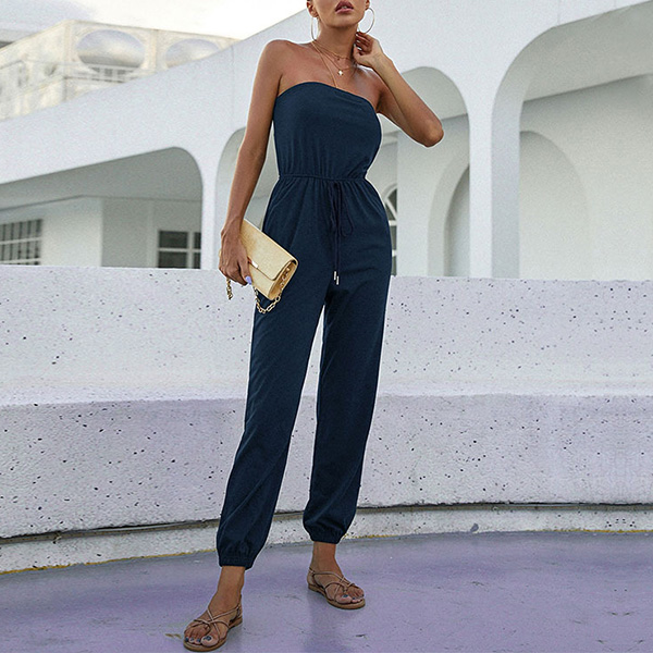 Strapless style,boasting a solid color and high waist design,this jumpsuit can give you