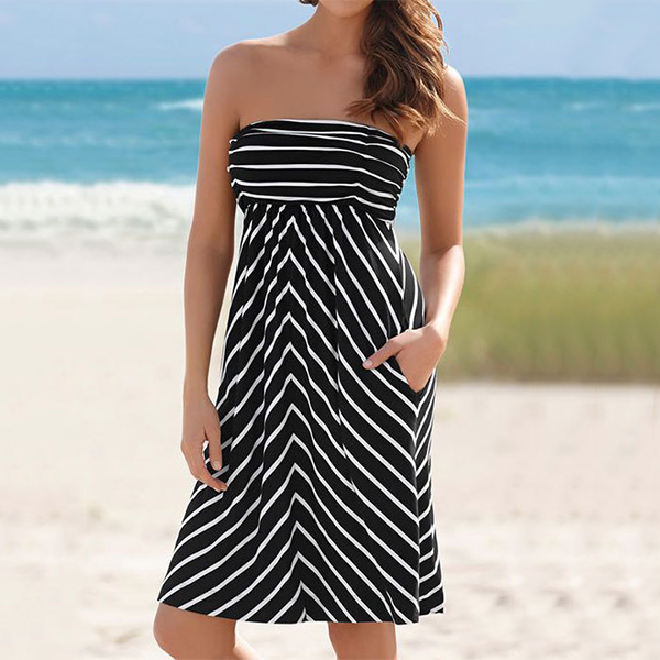 The perfect epitome of demure femininity and sultry style, this striped dress is a perfect choice for your parties and gatherings.