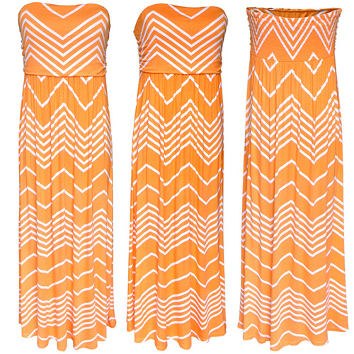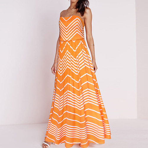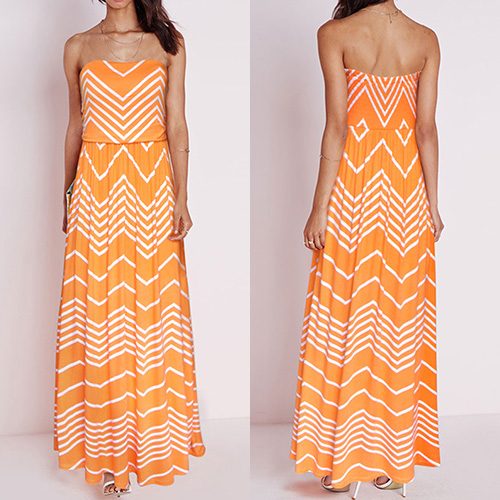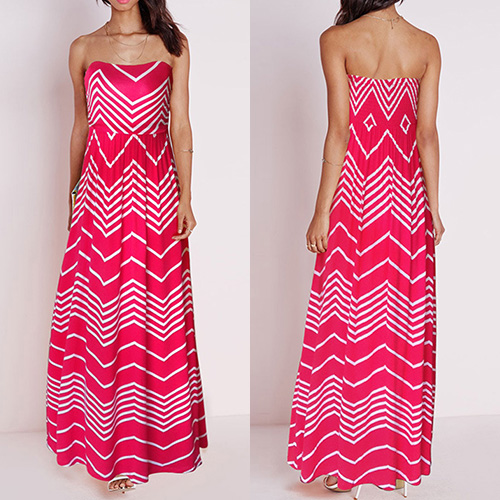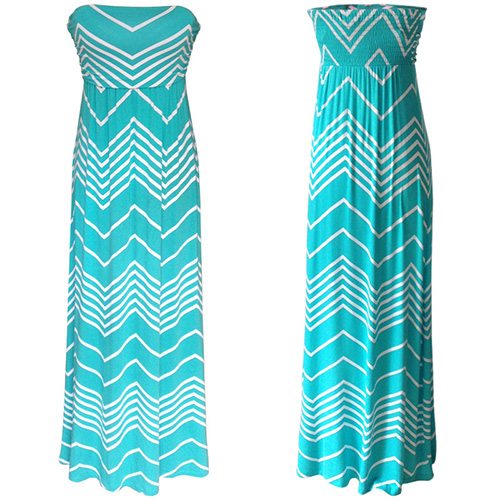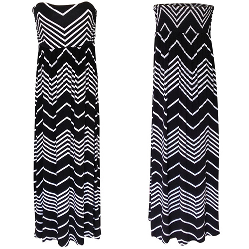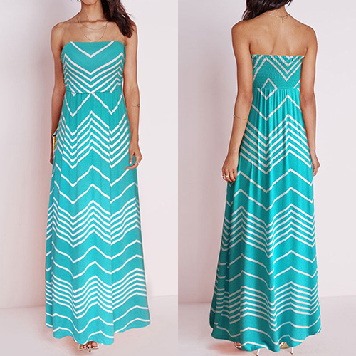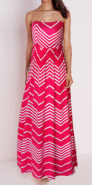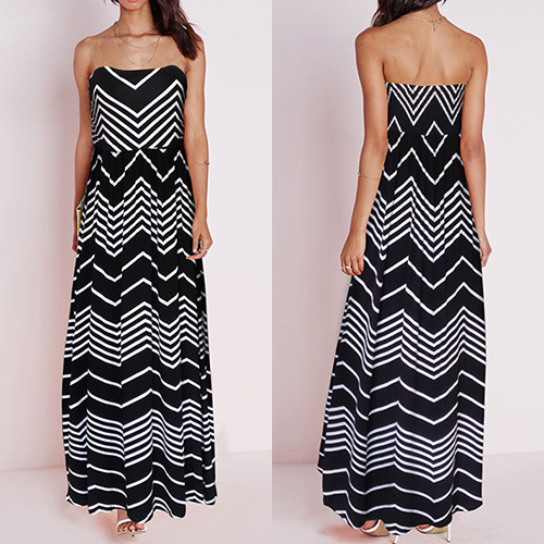 with this striped maxi dress. Strapless style,with high waist and a maxi length,stylish and charming.