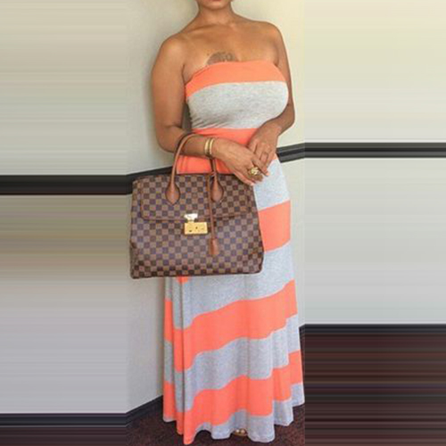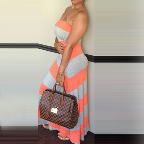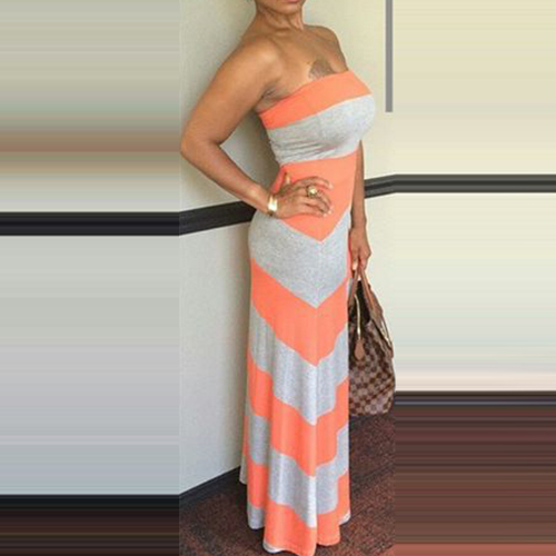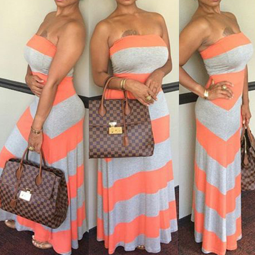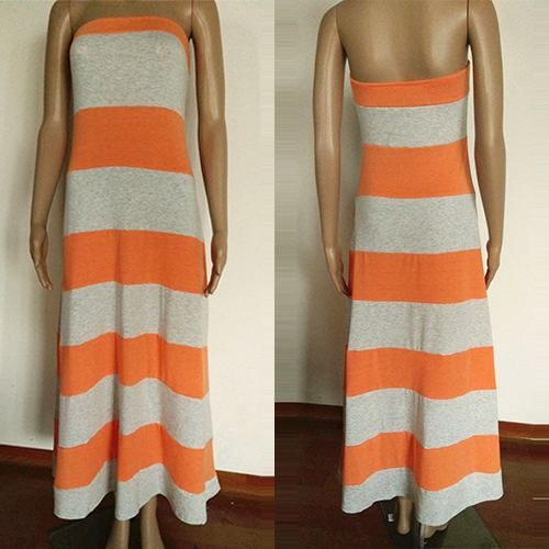 Strapless style,with striped design,sexy and charming. And its high waist and maxi length