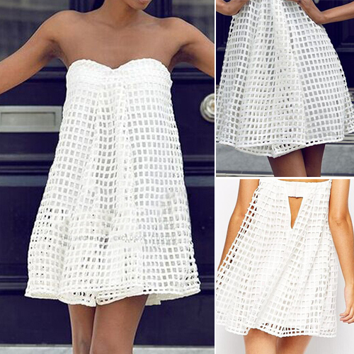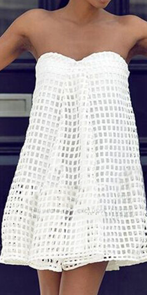 Strapless style,with letters printed and hollow out design,this dress features chic,sexy and