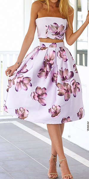 Designed with vibrant floral print,its strapless and hollow out high waist design makes it more