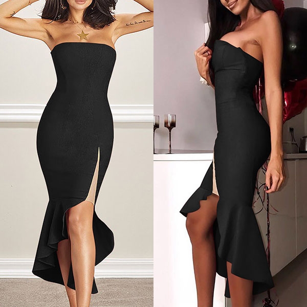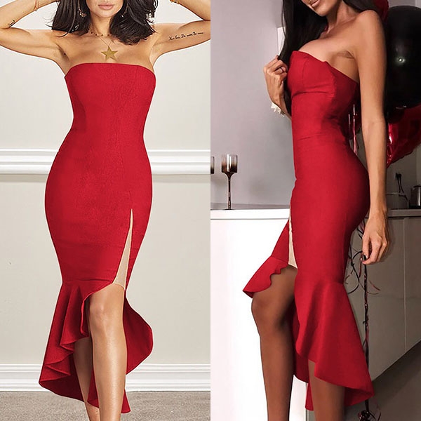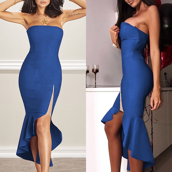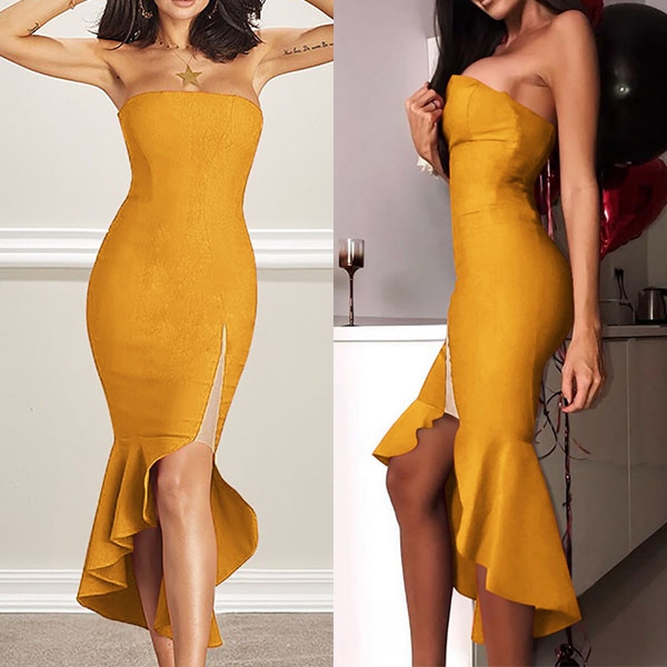 Strapless and irregular fishtail hem design make this piece look so sexy and distinctive.