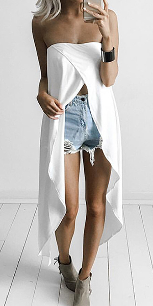 an irregular hem,this tops can keep sexy yet feminine. Paired with your denim shorts would be perfect.
