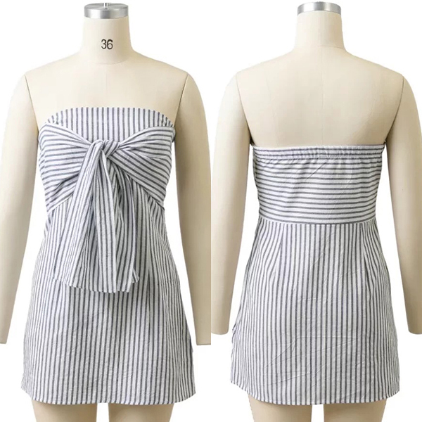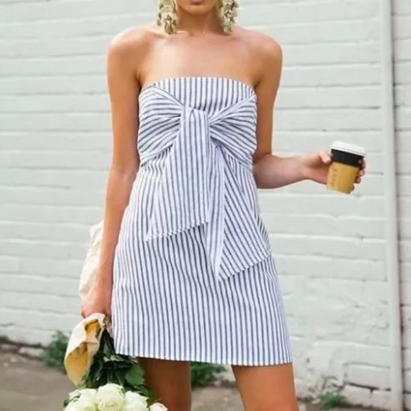 When looking for a proper dress for tonight's dating,this striped dress is here to help you. Strapless style,the knotted design