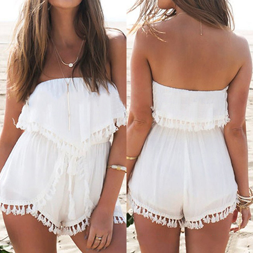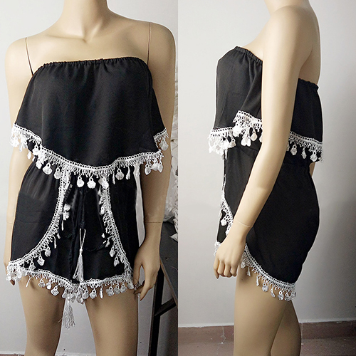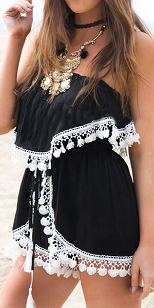 this romper is the perfect choice. Strapless style,with lace spliced design makes it more feminine.