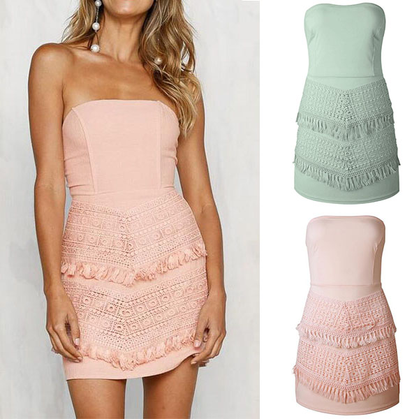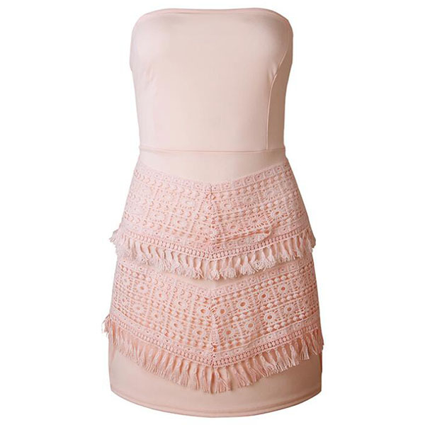 if you have this dress in your team. Strapless style,with backless and lace spliced design,sexy and alluring,
