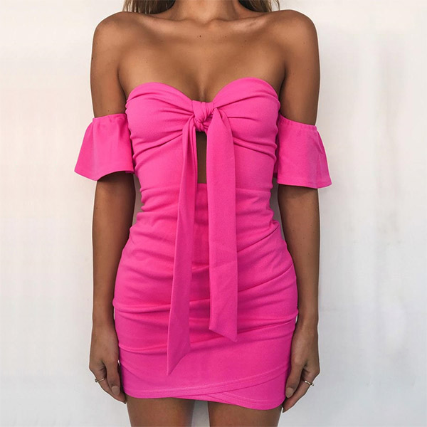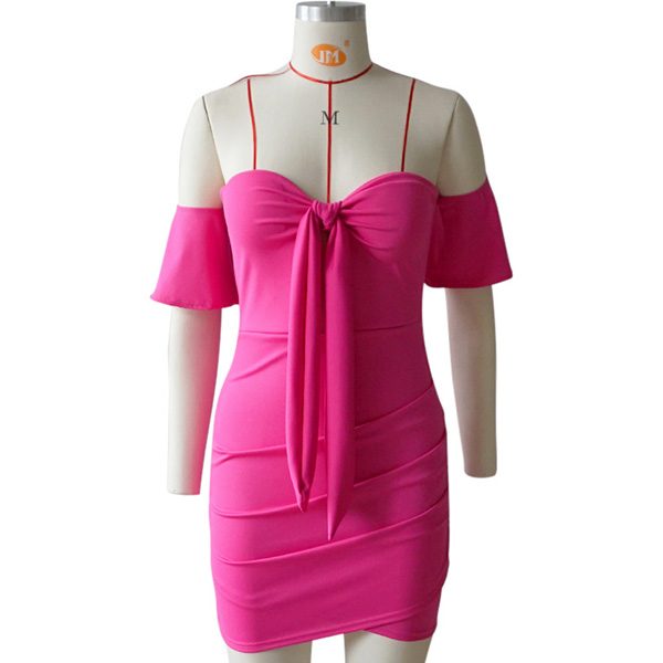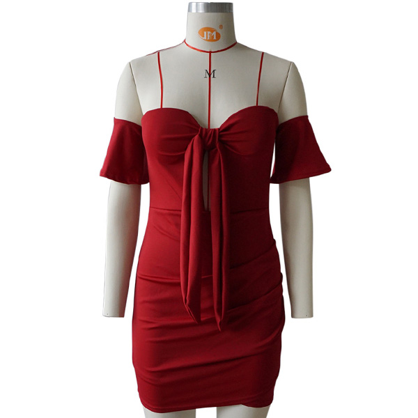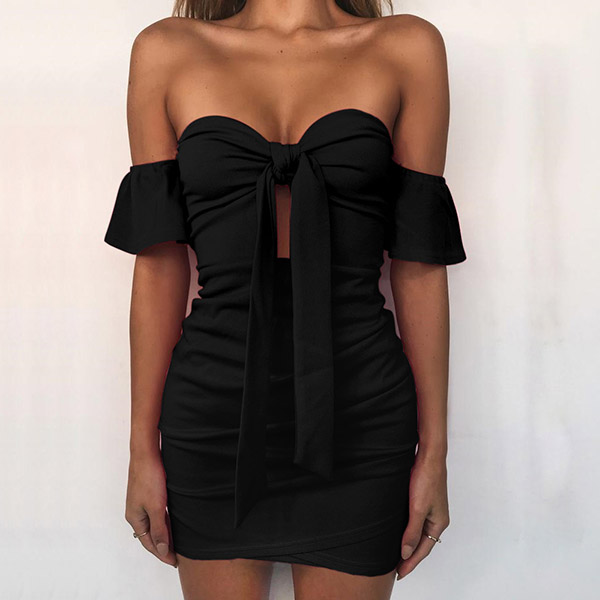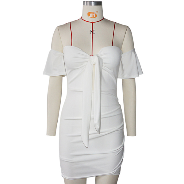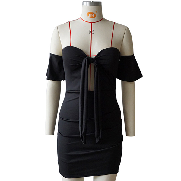 This effortless sexy dress is perfect for any last-minute invitation. Strapless style,with lotus sleeve,front lace-up