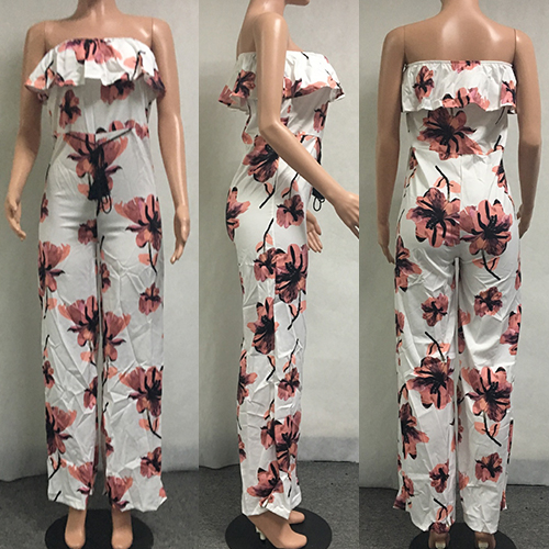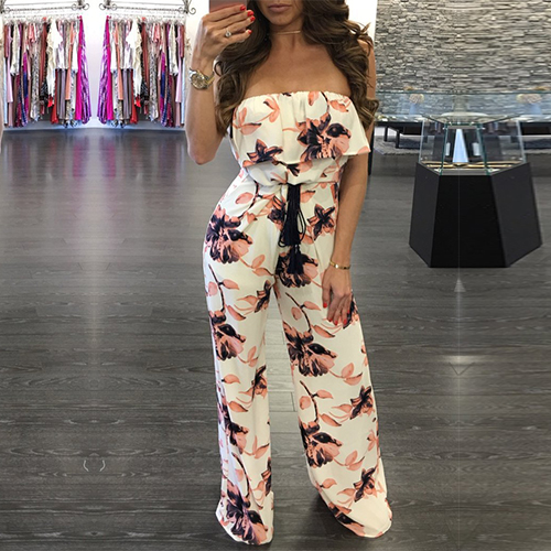 Celebrate that special day by donning this gorgeous jumpsuit! Strapless style,designed with ruffle details that infuse