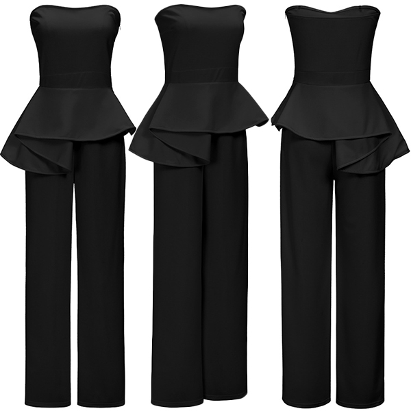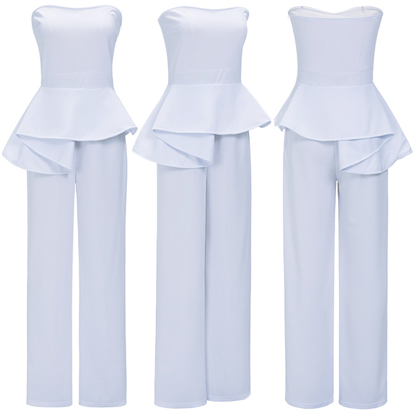 When invited to a party,this jumpsuit can easily make you stand out in the crowd. Strapless style,tailored with ruffle details,