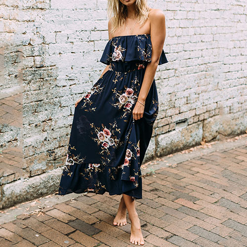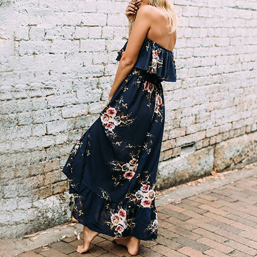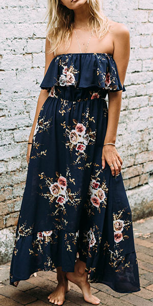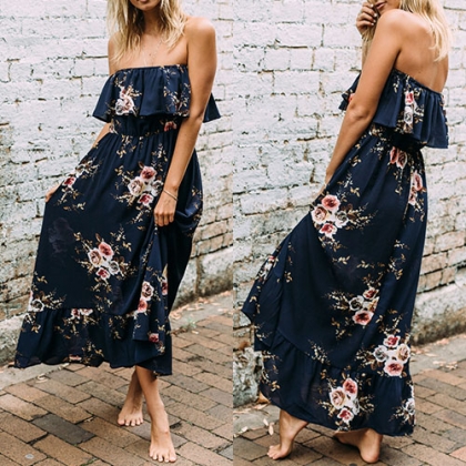 When invited to a summer garden party,this charming dress will make you stand out. Strapless style,its ruffle and vibrant floral print