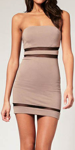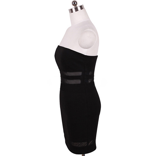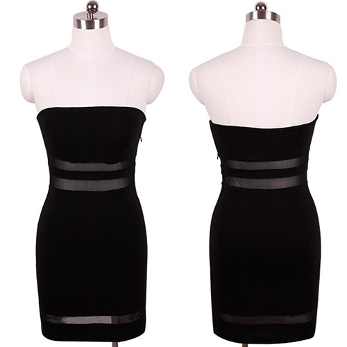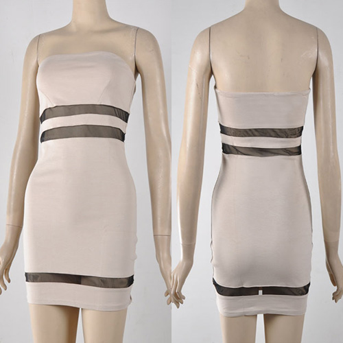 Strapless style,with see-through gauze spliced and a fit silhouette,all these details
