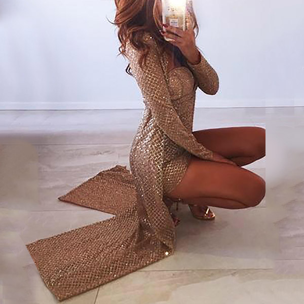 Including a strapless sequin mini dress and a long sleeve cardigan,this two-piece set can accentuate