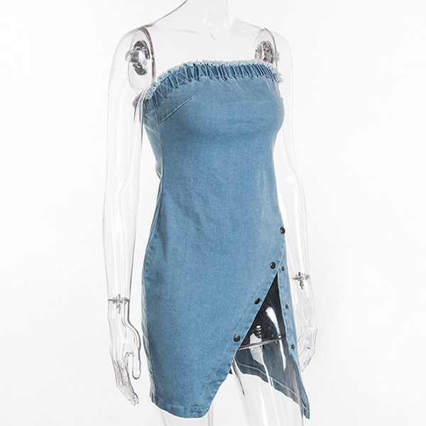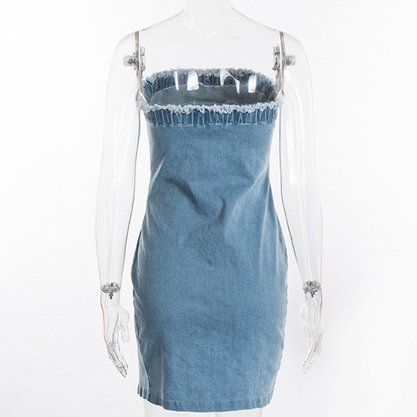 Your alluring style and seductive curve will no longer be a secret when you slip into this denim dress.