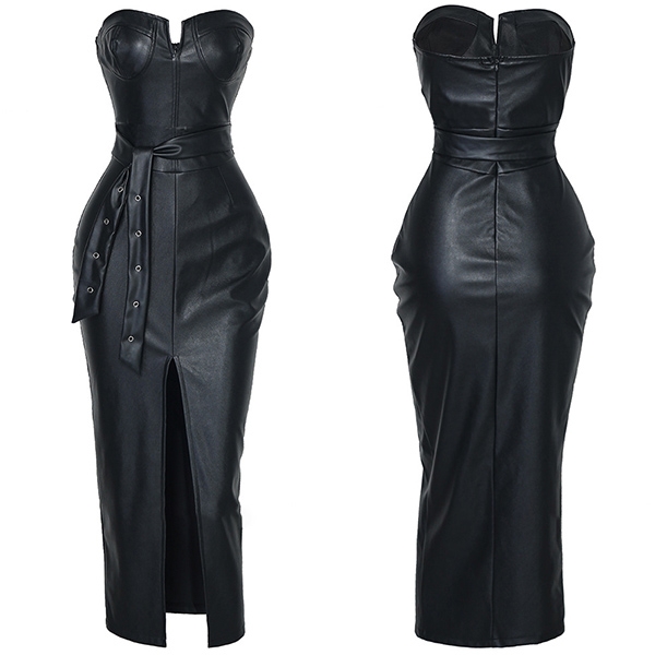 Strapless style,with high waist and slit hem design,this little stunner not only can showcase