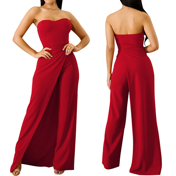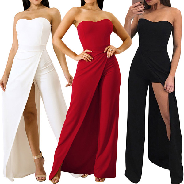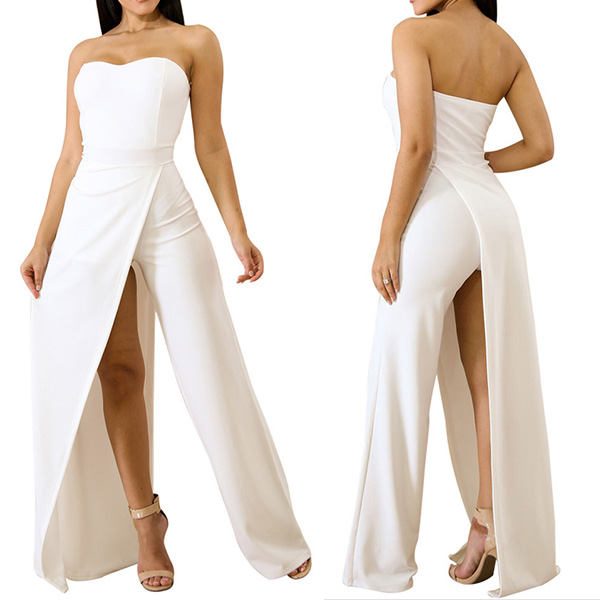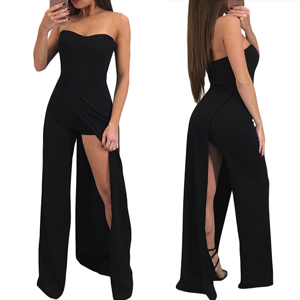 When you throw yourself into this jumpsuit,you can easily win more eyes! Strapless and slit hem deisgn