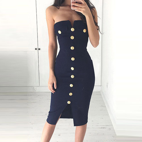 Strapless style,with a fit silhouette and a slit hem,this dress can give you a sexy style as well as