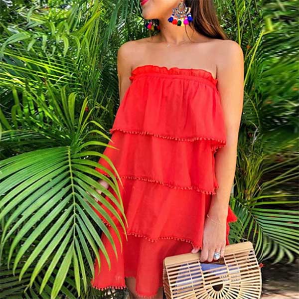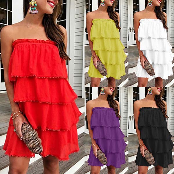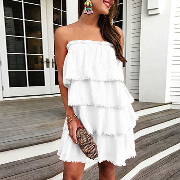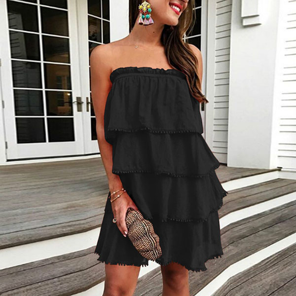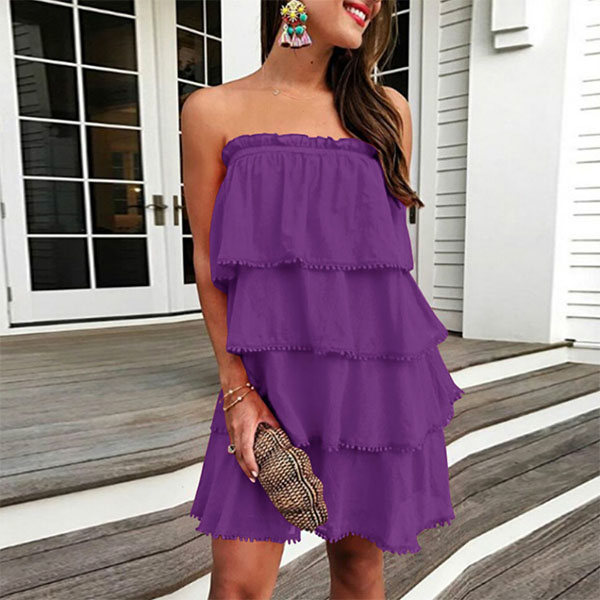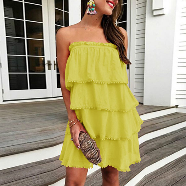 Strapless style,designed with a solid color and multi-layer design,this dress can give you an effortless charming look.
