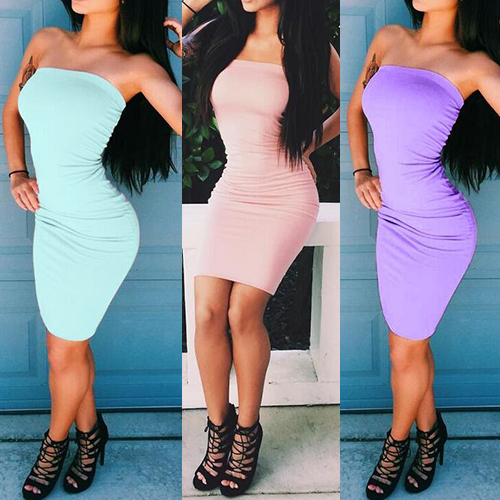 When invited to a party,this mini dress is a good choice for you. Strapless style,designed with a body-flattering