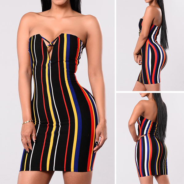 mini length design makes this piece sexy and alluring,while its colorful striped design makes it easier for you to stand out
