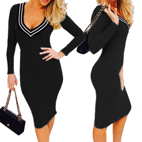 an all-in-one dress like this one. Outfitted with a stripe deep v-neckline,long sleeve and a super fit