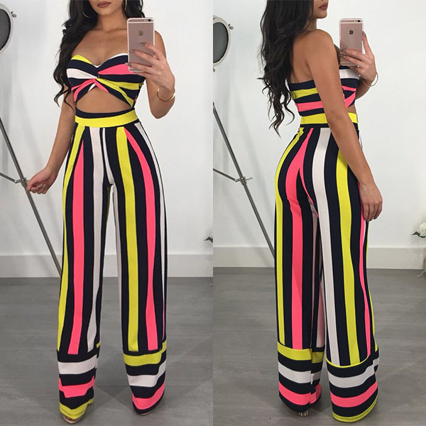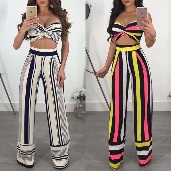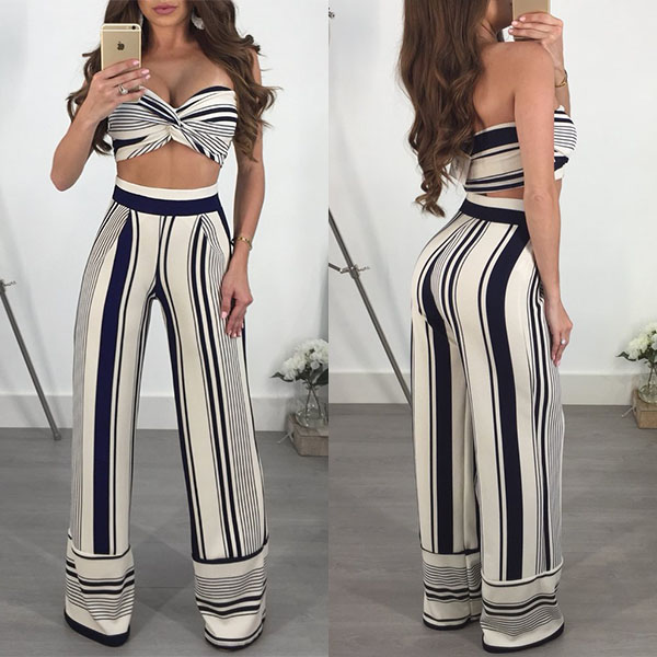 a bandeau top and a high waist wide-leg pants,this two-piece set can showcase your perfect curve as well as
