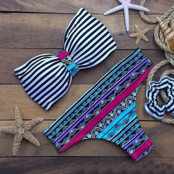 Still looking for a sexy and alluring bikini set for your beach days? We suggest you this set! Including a striped bowknot