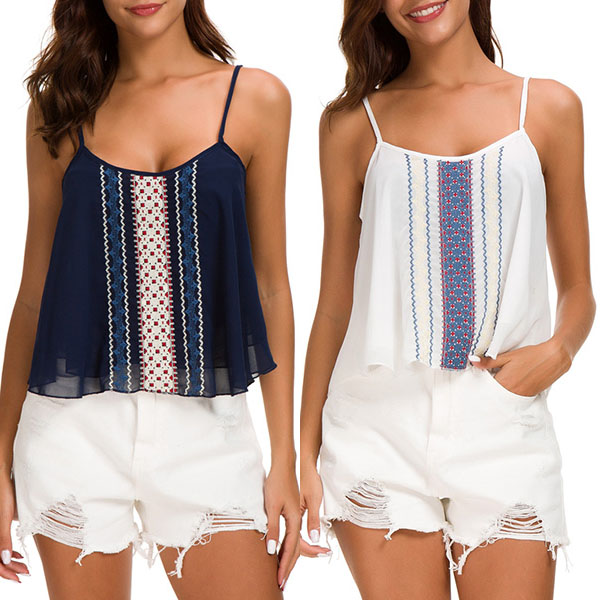 design on the front, an adjustable cami strap. This summer, let us pack the cami top and