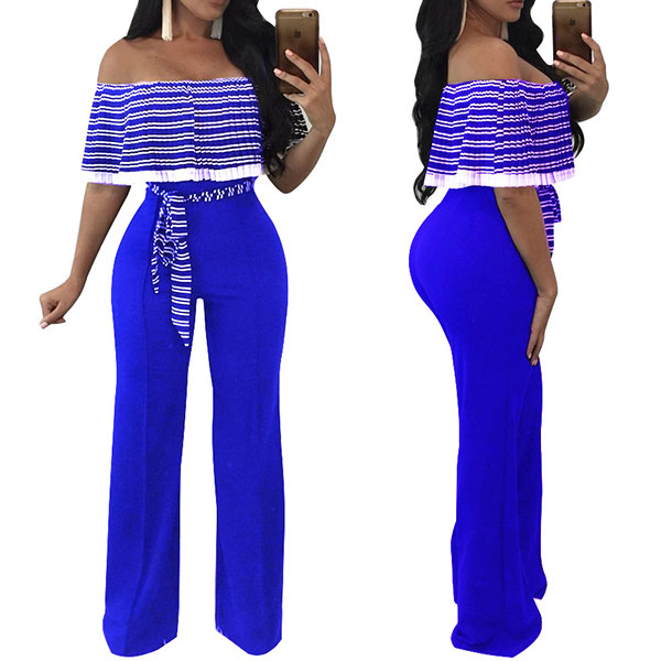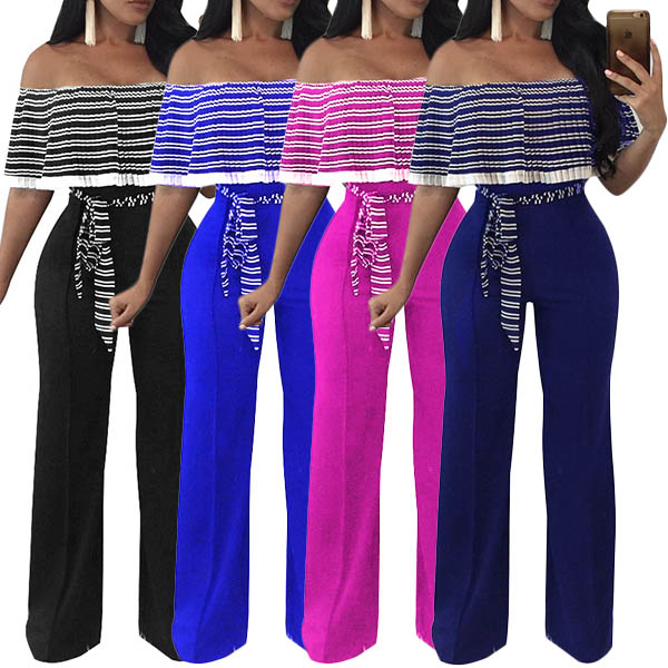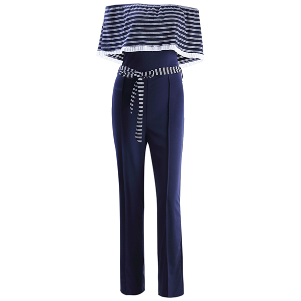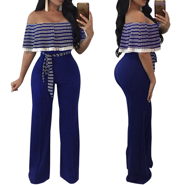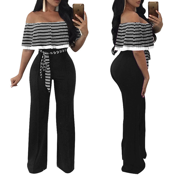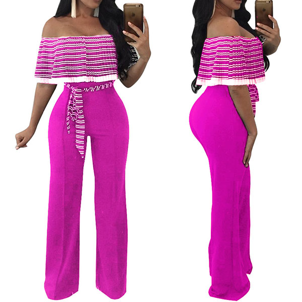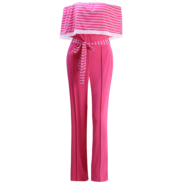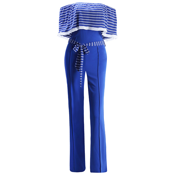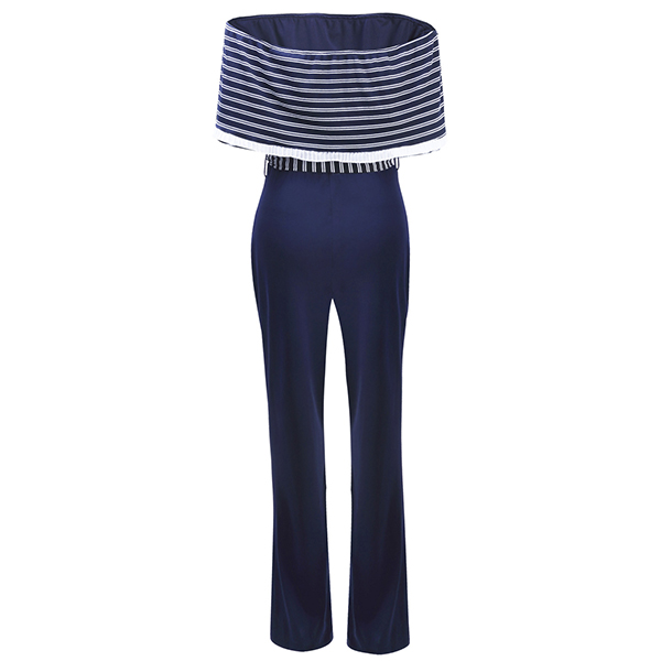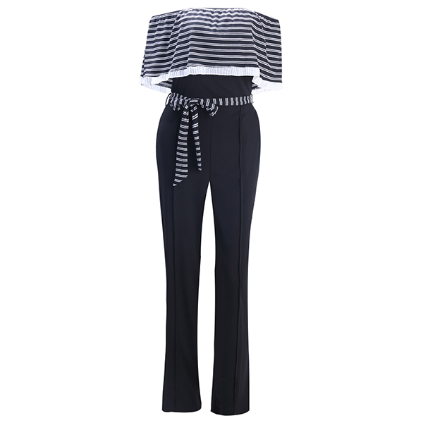 Enhancing your feminine appeal is an easy thing with this jumpsuit! Striped spliced design enriches the