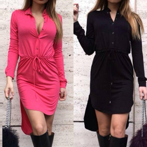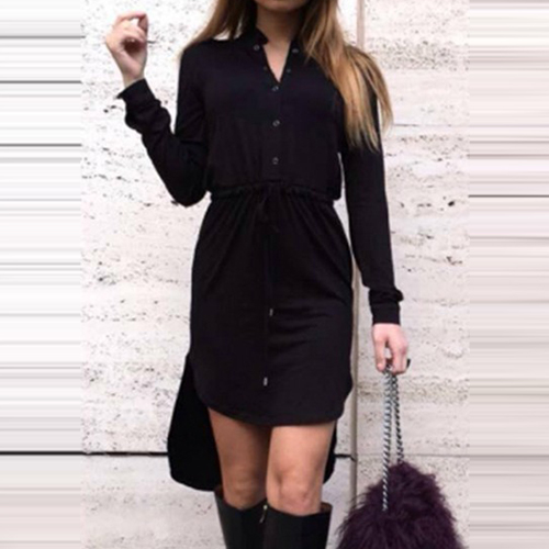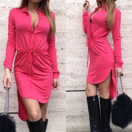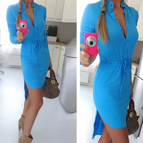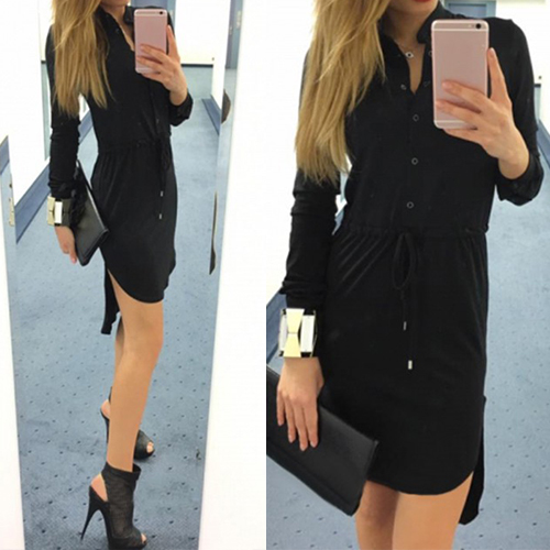 This piece of shirt dress is solid color. This piece of dress is not only styled with a drawstring waistline,