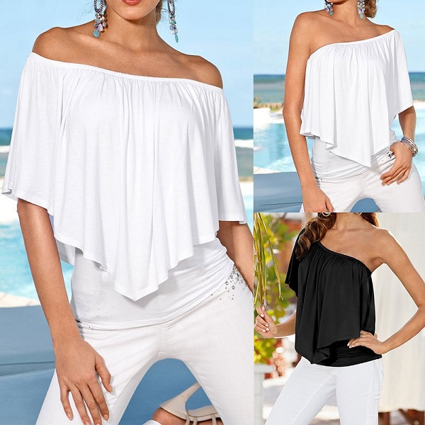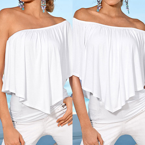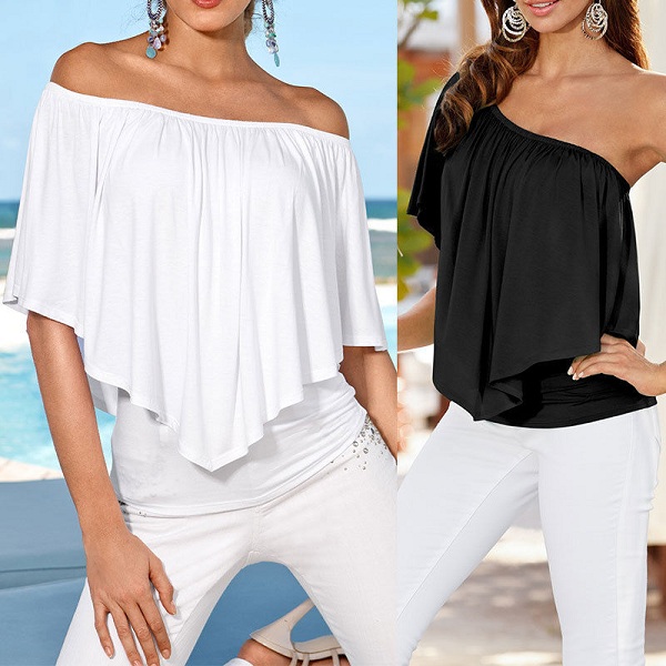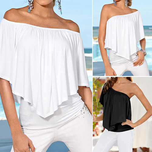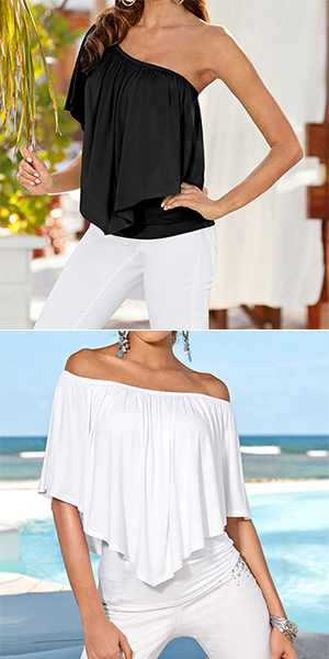 With a one-shoulder design and dolman sleeves, this mock two-piece top looks sexy and fashion.
