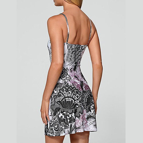 This piece of cami dress not only is floral printed, but also styled with a v-neck and ruched
