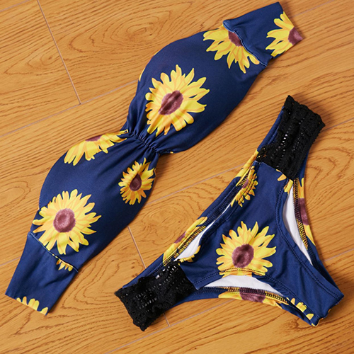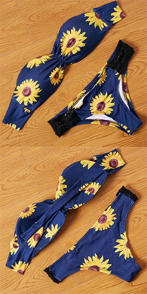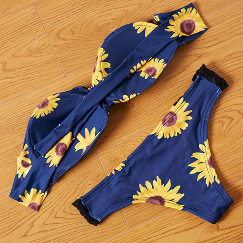 Its sunflower printed patter design makes this bikini set look so eye-catching. Including