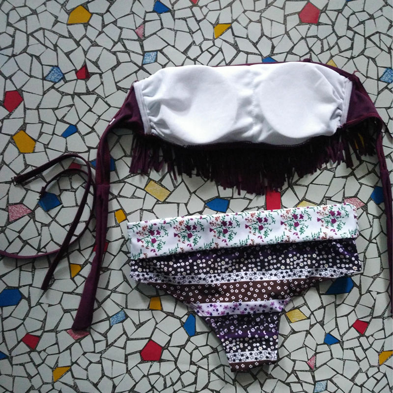 a tassel bra and a printed triangle briefs. A must-have item for your seaside trip.