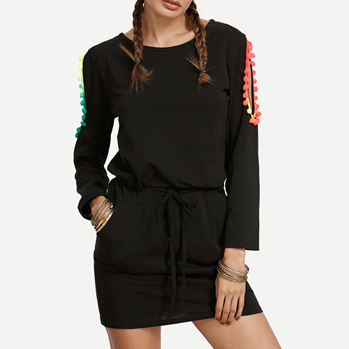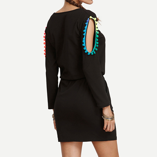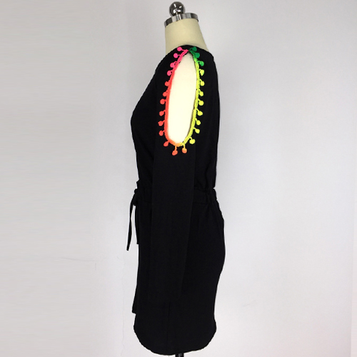 whilst its off-shoulder and color gradient tassel design makes this dress more appealing.