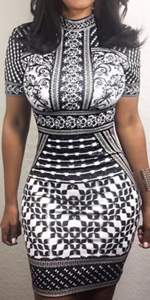 Ethnic style, totem printed design, chic and eye-catching. A close-fitting silhouette perfect accentuates