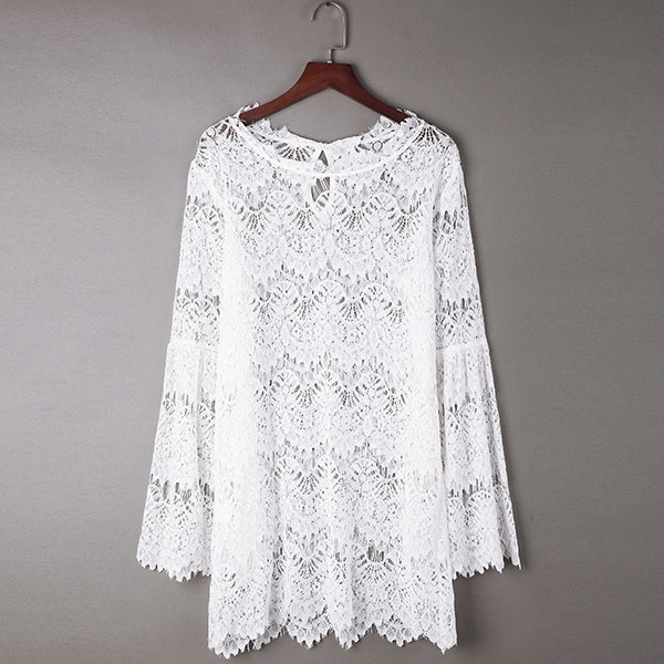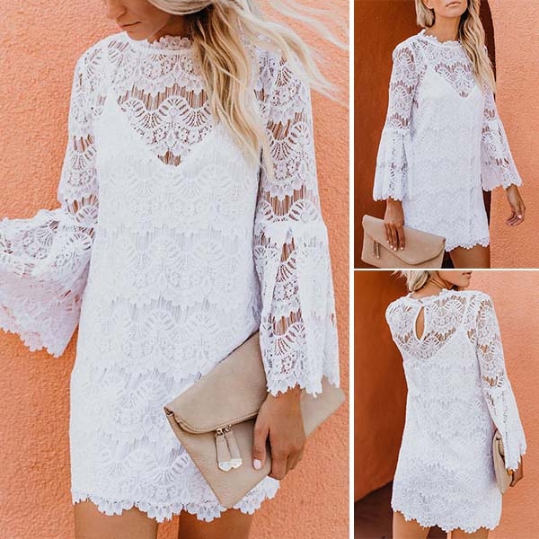 Sexy Trumpet Sleeve Round Neck Hollow Out Lace Dress